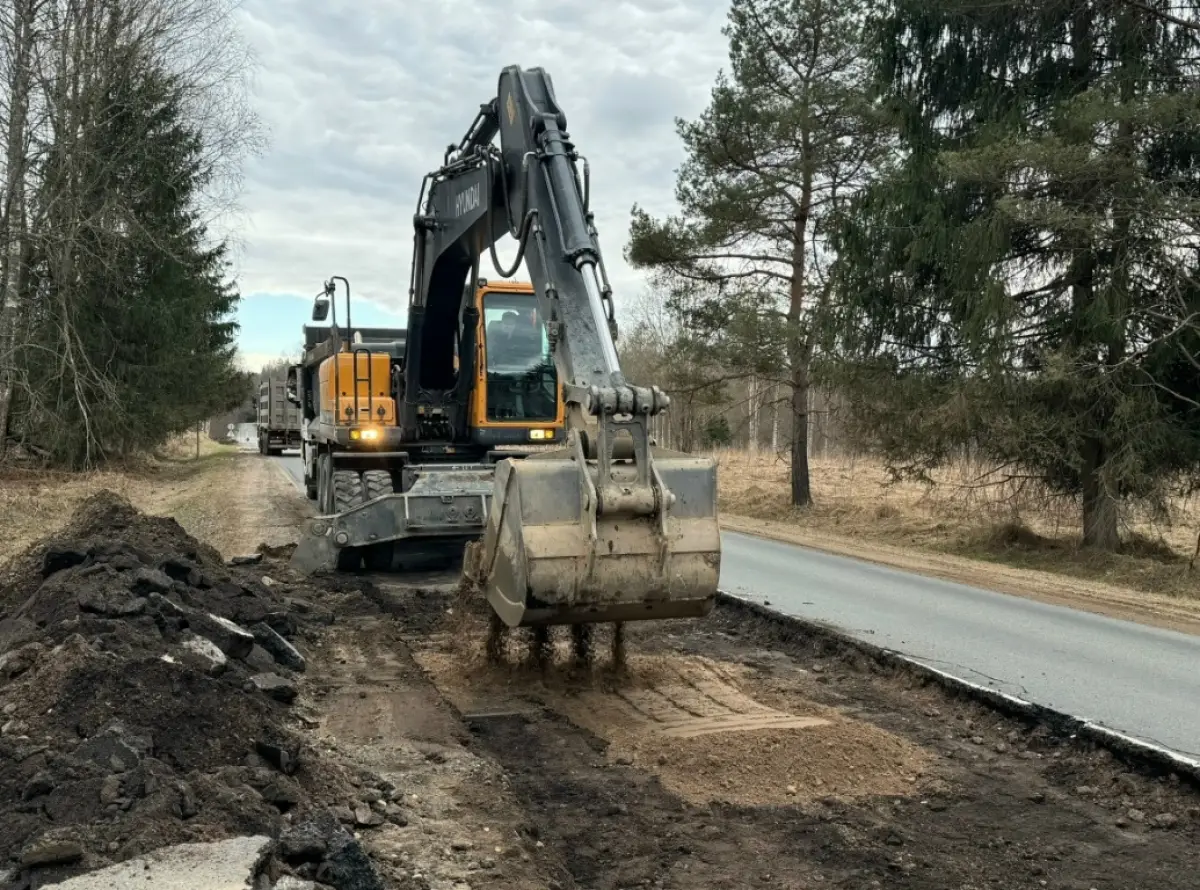 Идёт разработка земляного полотна с удалением слабых грунтов и последующая засыпка инертных материалом для усиления основания дорожной конструкции, а также укладка асфальтобетонного покрытия дорожными картами.