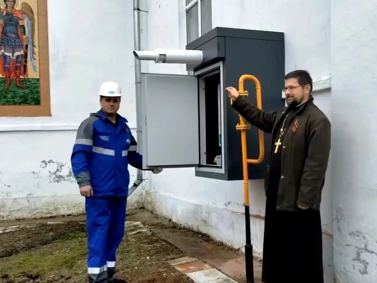 Для газификации храма специалисты выполнили врезку в действующий газопровод, установили уличный газовый термоблок, который обеспечивает отопление и горячее водоснабжение храма.