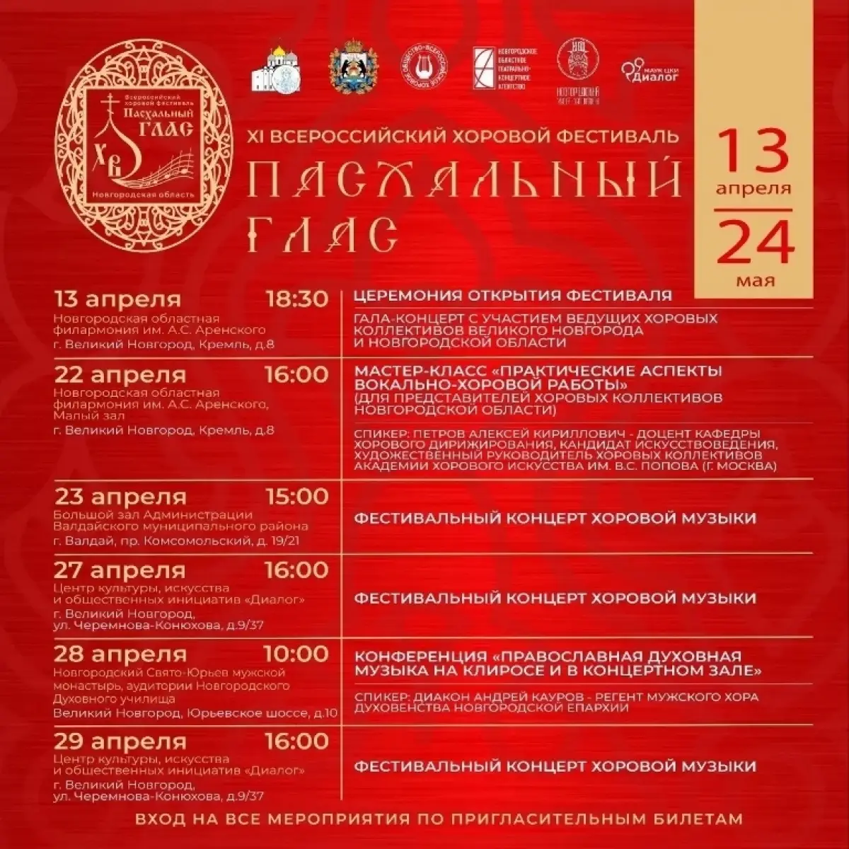 С 13 апреля по 24 мая в Новгородской области пройдёт традиционный XI Всероссийский хоровой фестиваль «Пасхальный глас».