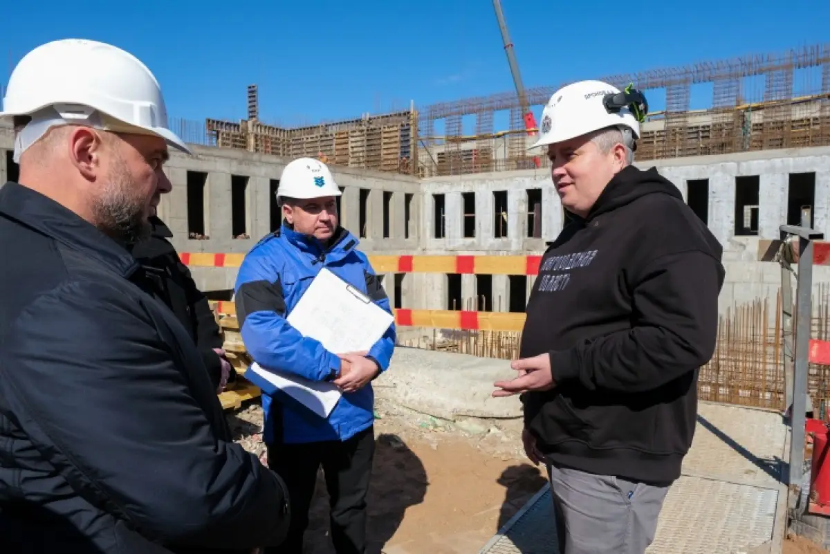 Сейчас строители завершают возведение монолитной конструкции самого здания, в ближайшее время приступят к устройству металлоконструкций кровли и вентилируемого фасада.