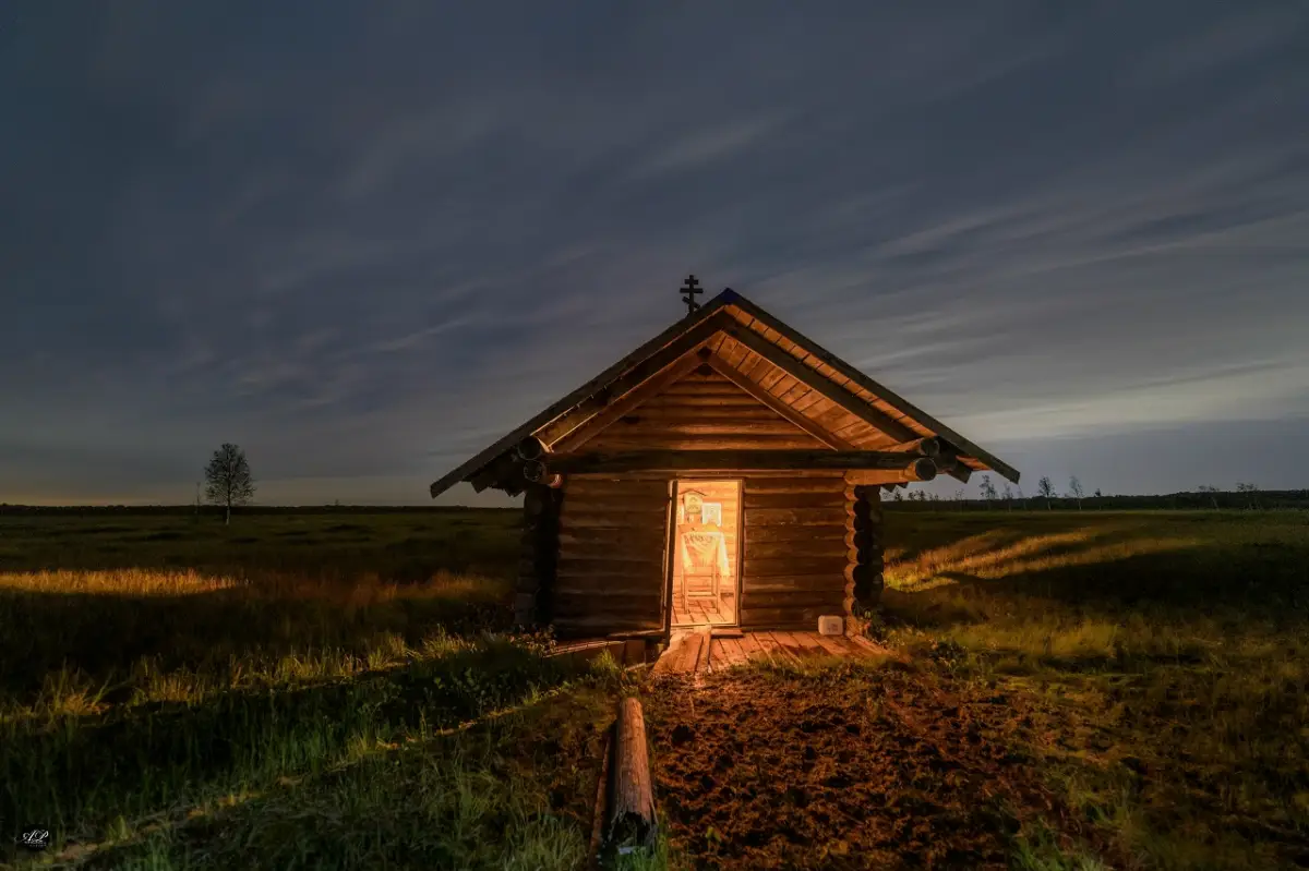 Часовня Иоанна и Иакова Менюшских на берегу Святого озера. Автор снимка новгородский фотохудожник Александр Парамонов.