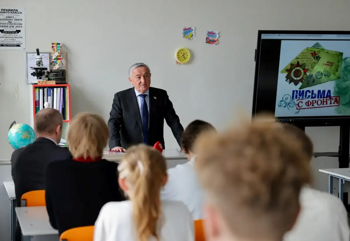 Юрий Бобрышев рассказал школьникам о старте акции «Письма с фронта», которая проходит по инициативе «Единой России» в преддверии Дня Победы, 9 Мая.