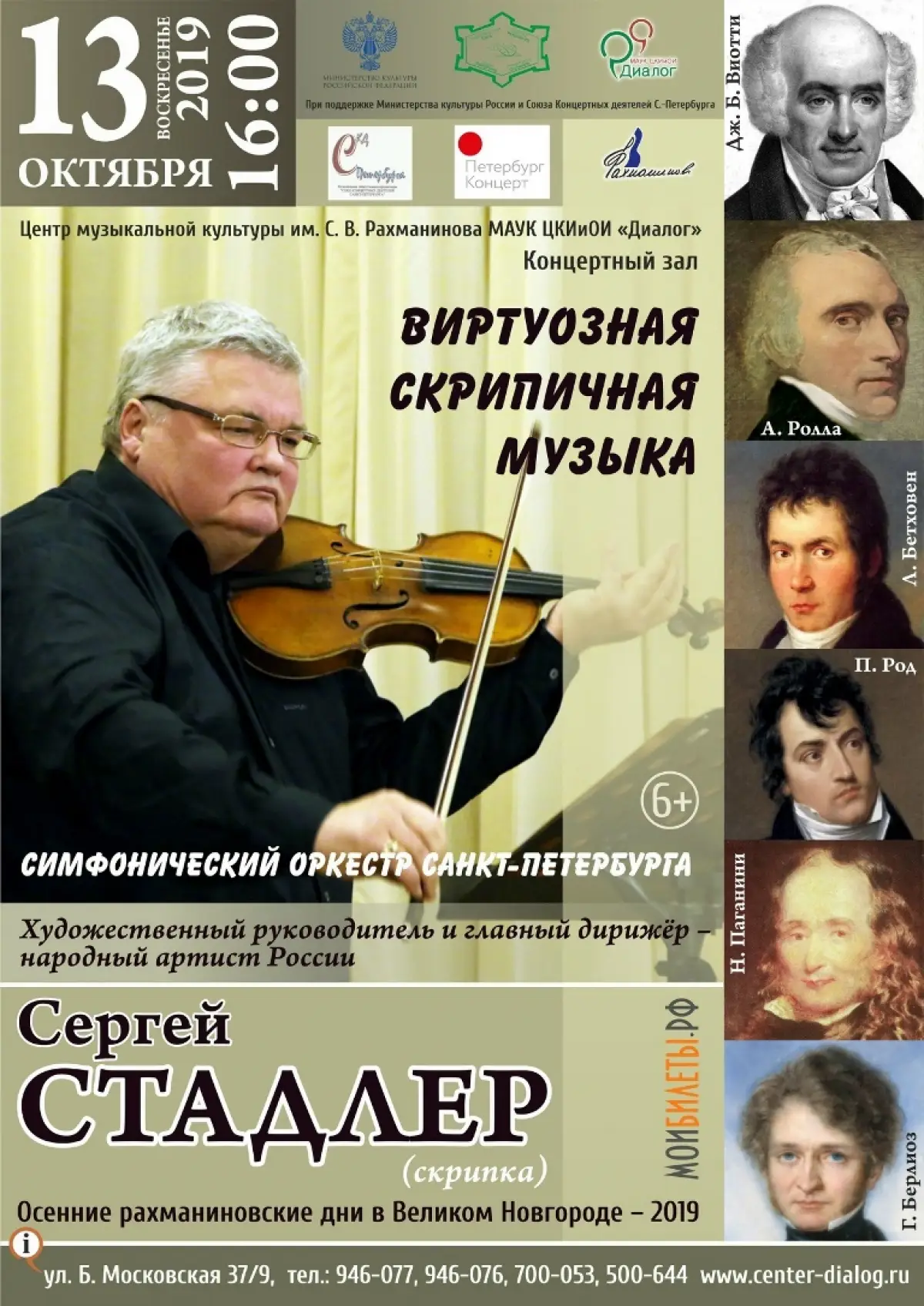 Осенью 2019 года в Великом Новгороде вновь прошёл концерт Сергея Стадлера и Симфонического оркестра Санкт-Петербурга. В программе звучала виртуозная скрипичная музыка, в том числе, сочинения Никколо Паганини и произведения других авторов, которые он исполнял.