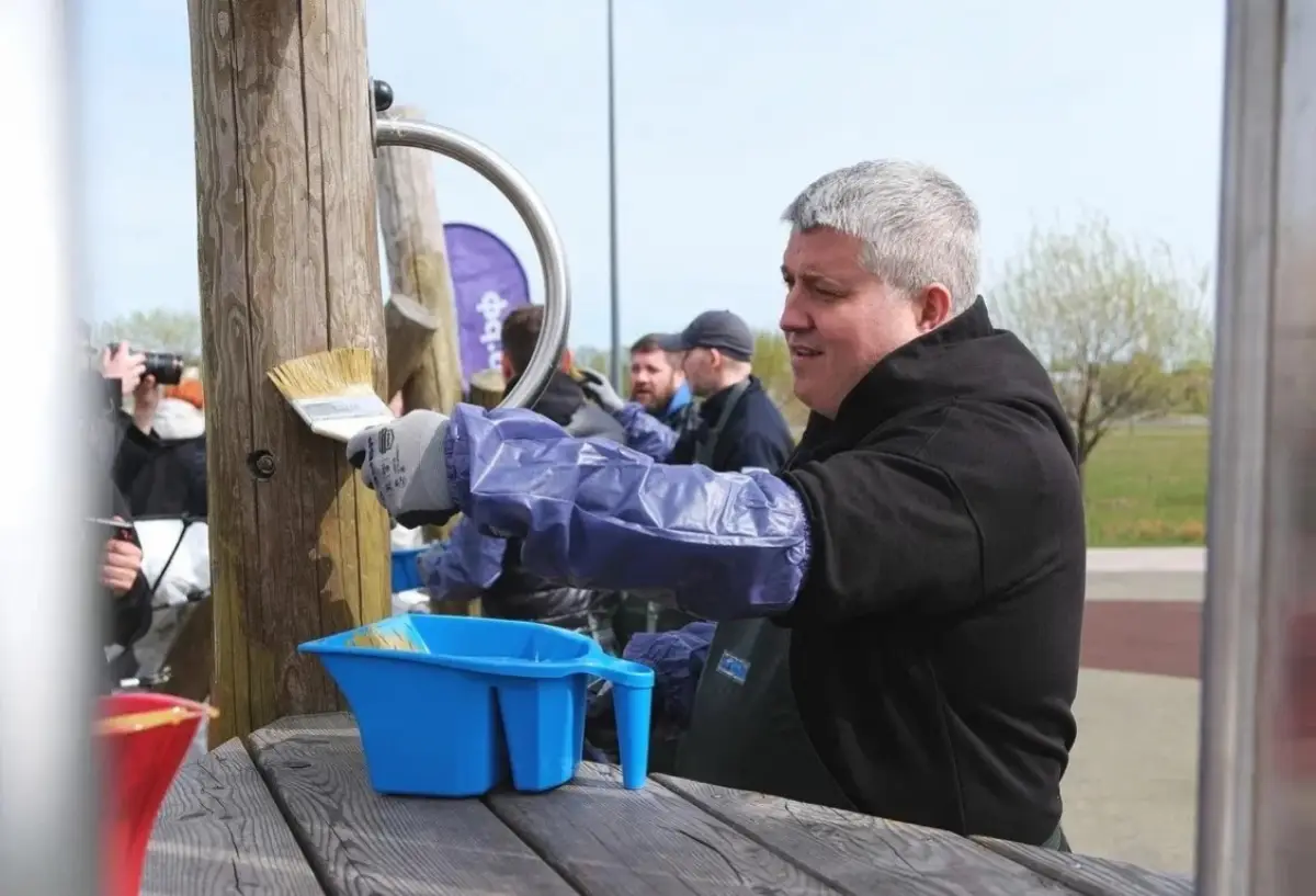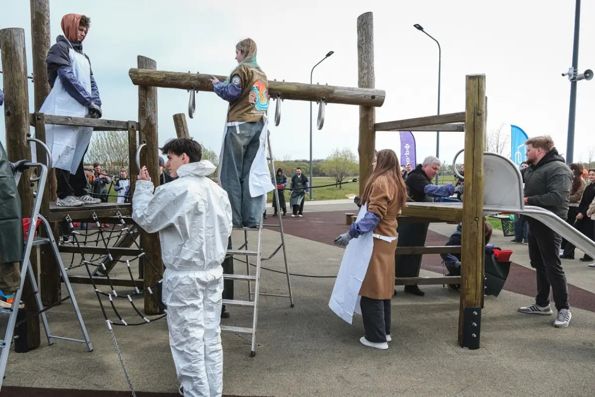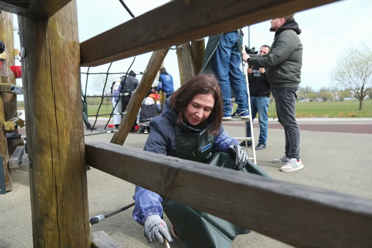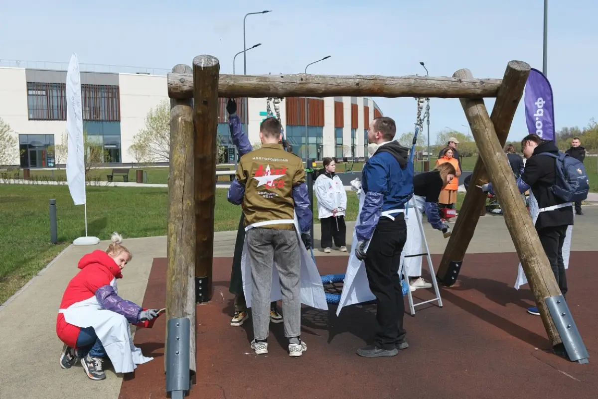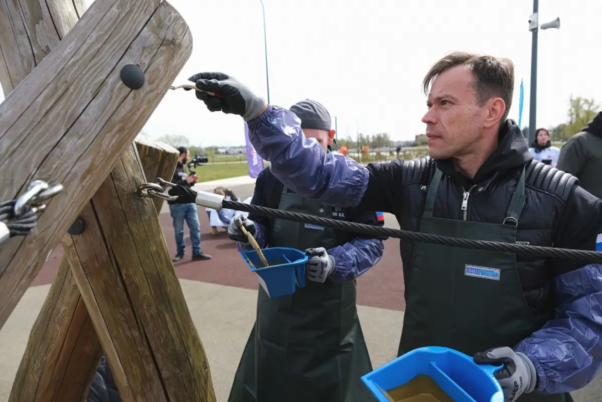 Участники субботника покрыли специальным маслом деревянные элементы конструкций. Эта обработка поможет защитить дерево от влаги и перепадов температур, значительно продлит срок службы оборудования.