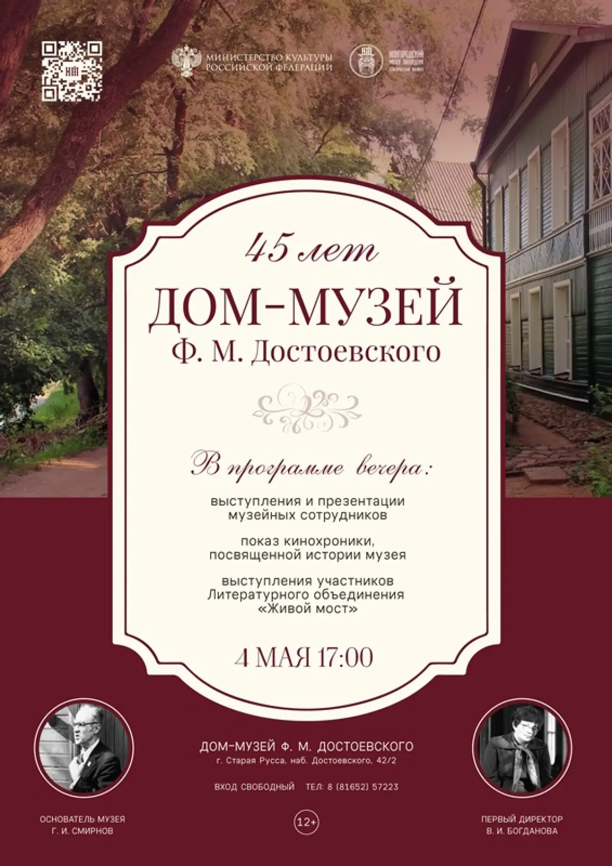 Кульминацией встречи станет презентация новых и уже знакомых поэтических строк о музее и старорусском периоде жизни Достоевских, подготовленная участниками Литературного объединения «Живой мост».