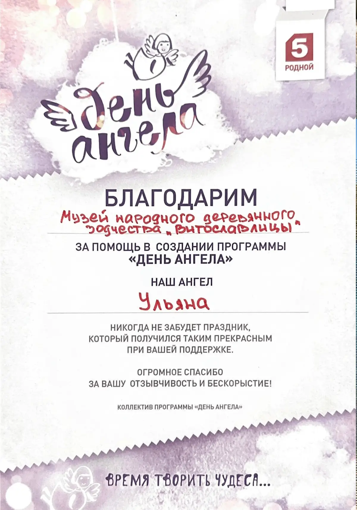 Коллектив музея желает Ульяне исполнить все свои самые заветные мечты.