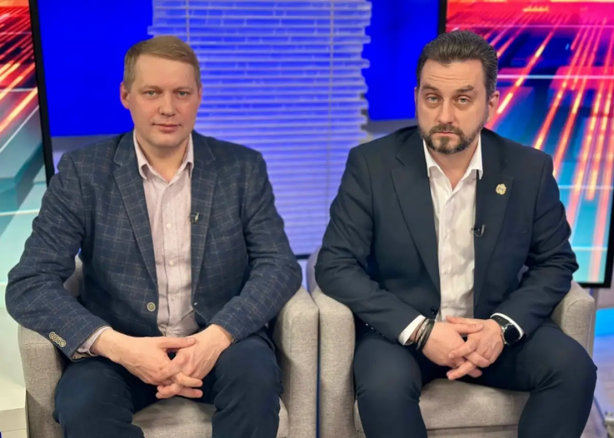 Гости программы Яков Андреев и министр цифрового развития и информационно-коммуникационных технологий Новгородской области Михаил Киблер